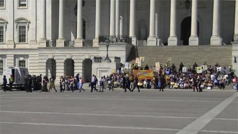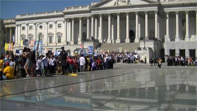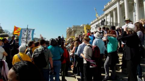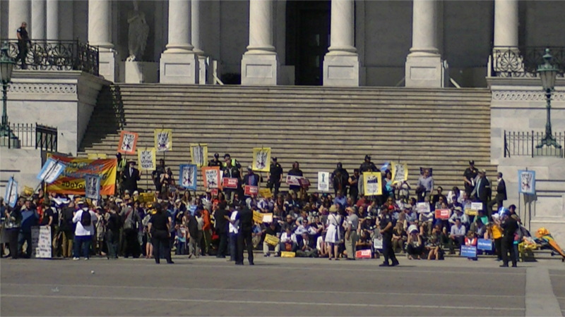 On the 18th of April,Democracy Awakening marched to the US Capitol for the culminating sit-in of a series begun a week ago by Democracy Spring. At the head of the march were NAACP and CASA contingents, including familes with small children. There appeared to be considerable overlap with the immigration rights protest at the Supreme Court. The march took over a good part of the Capitol Plaza upon arrival. During the sit-in, the presidents of the NAACP and of Greenpeace were among those arrested.
