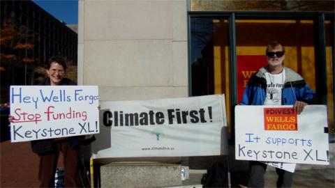 On Black Friday, the 24th of November, activists from Climate First! visited two local branches of Wells Fargo. They were there to deliver letters to management asking that Wells Fargo divest from the Keystone XL tar sands pipeline.