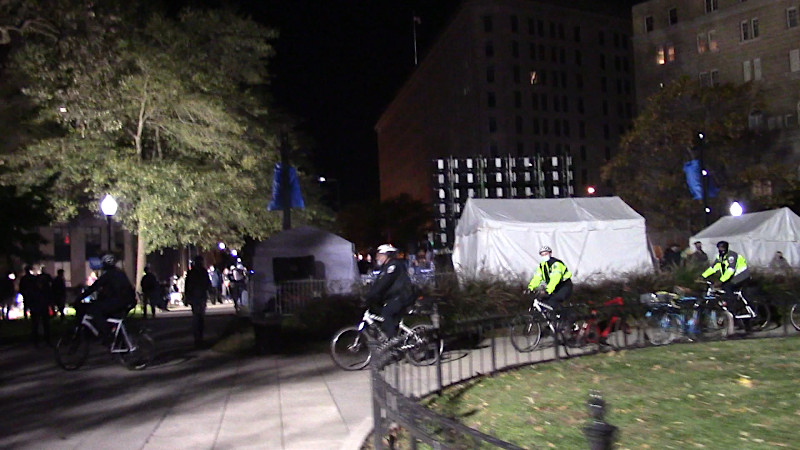 At some point during the same time as the threat to tow the go-go truck, cops violentely arrested an African-American man on an unknown charge. After the go-go was moved to McPherson Square, there were several "thunder runs" by MPD bike cops through both the go-go audience and the watch party for election returns also taking place in McPhersoon.