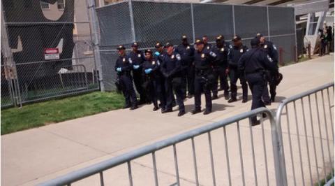 Cops waiting for anyone to step out of the Free Speech Freedom Cage-SOA Watch photo